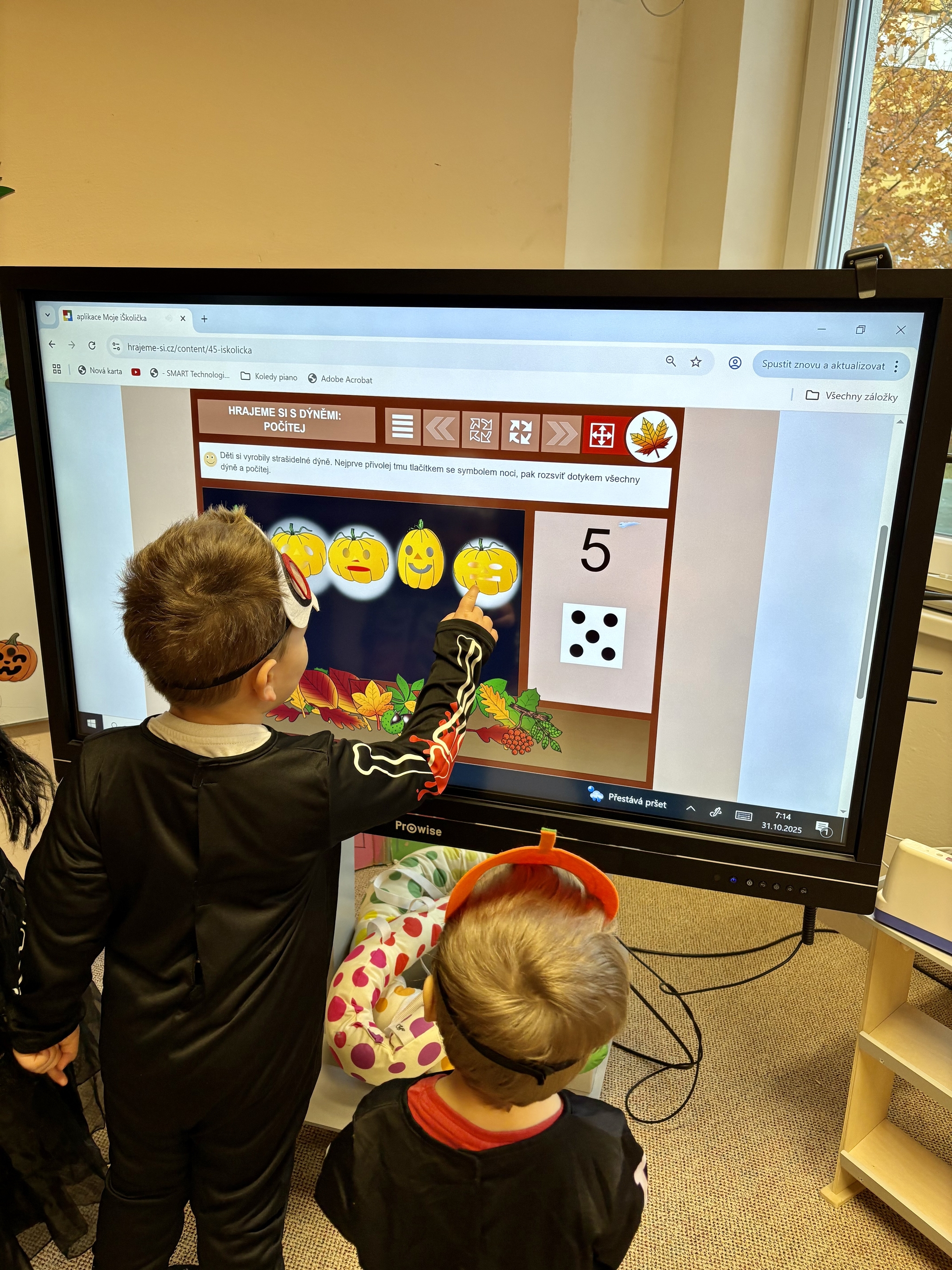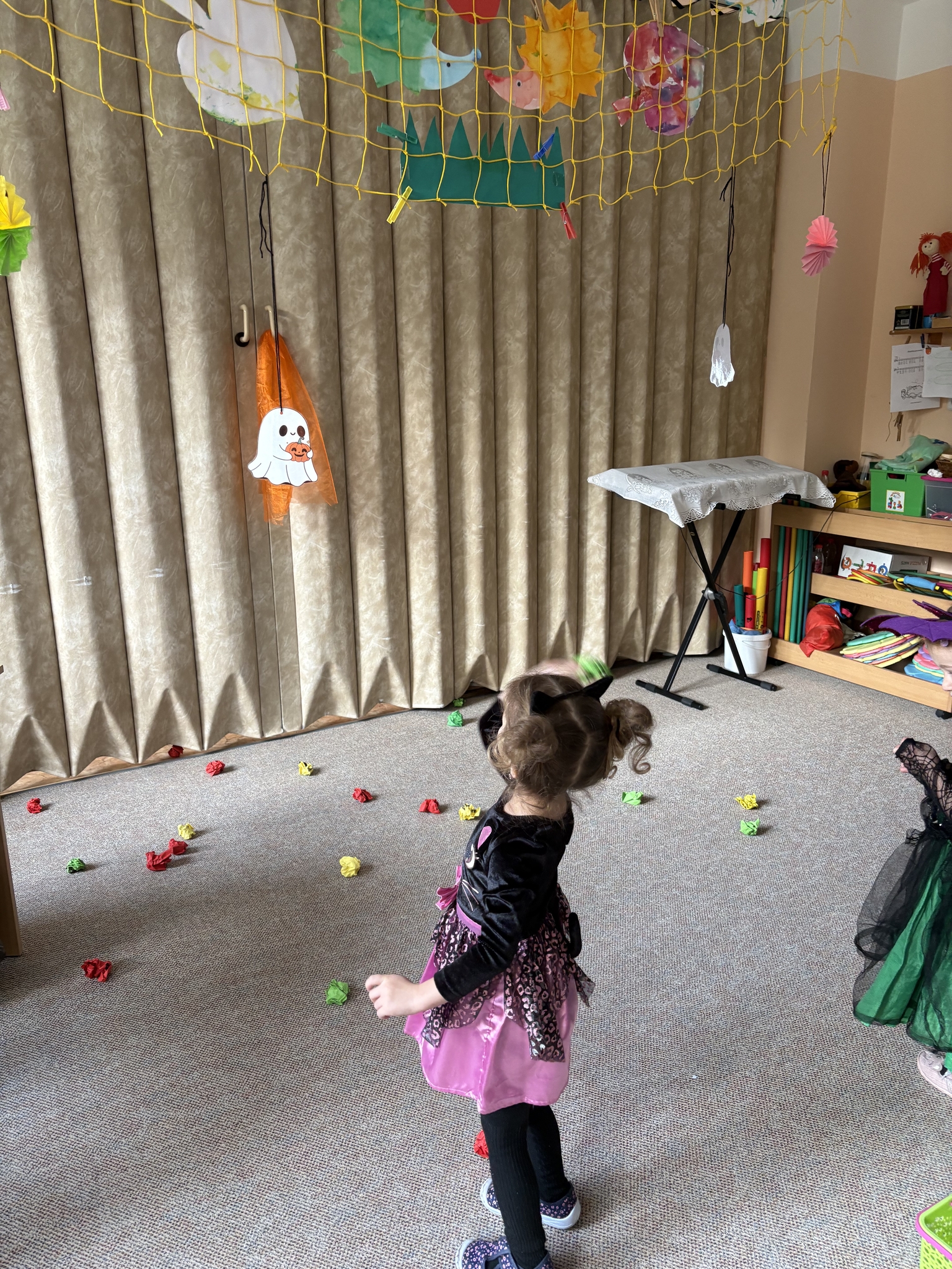 Dopoledne jsme si na třídách užili plno her a úkolů. Velké děti po svačině navštívily menší a užily si spolu halloweenskou diskotéku a ochutnávku lineckého cukroví, které si včera společně upekly. Na závěr dostaly halloweenský diplom.