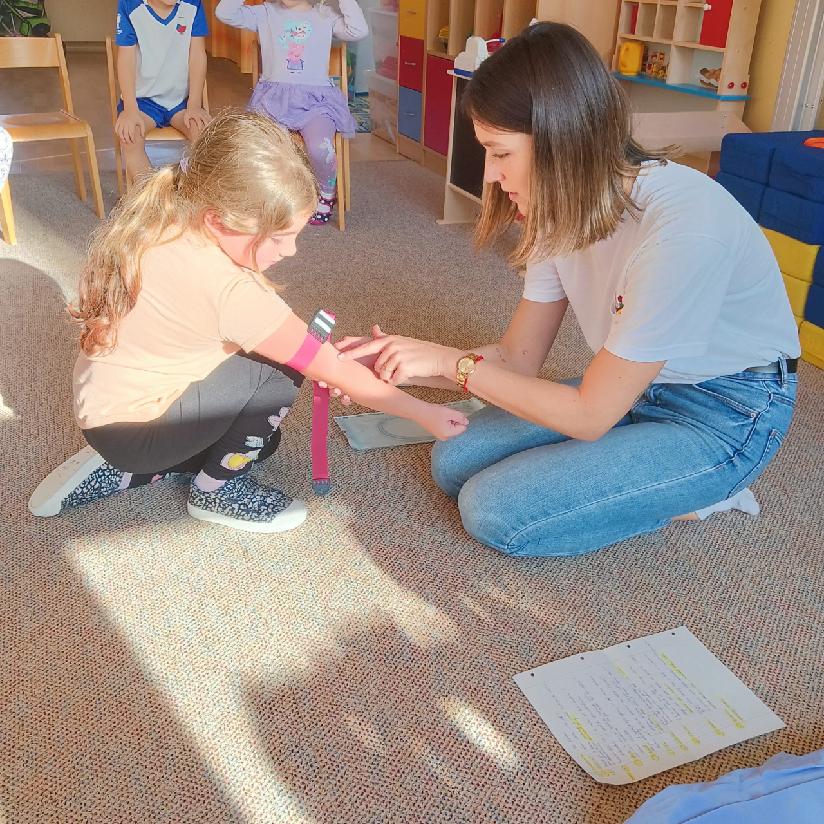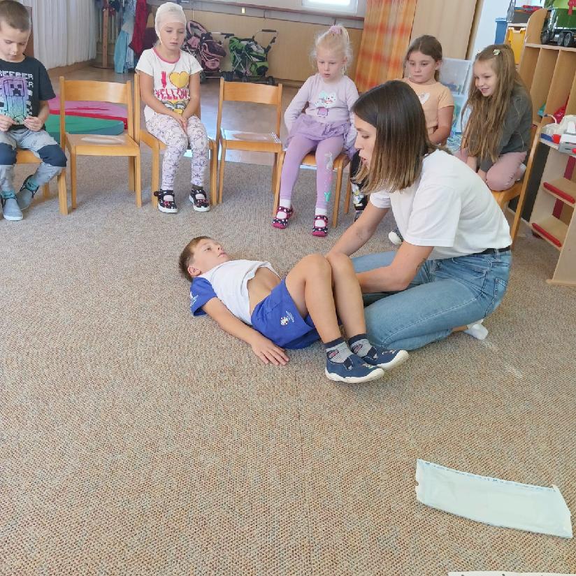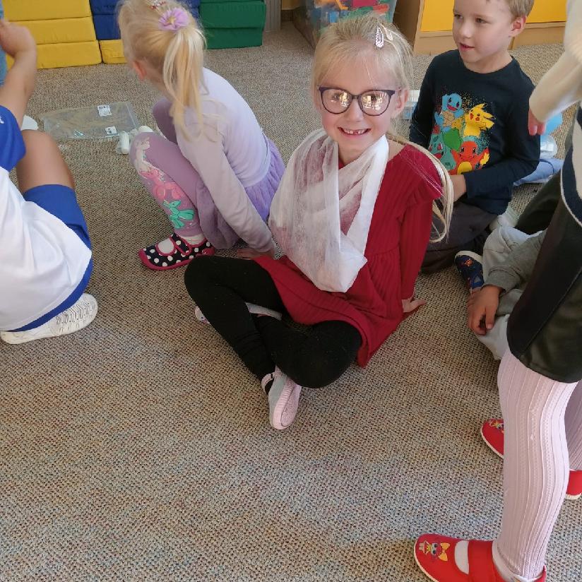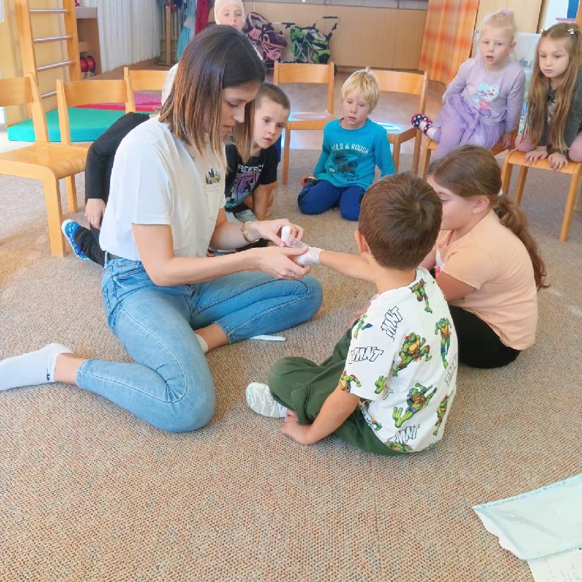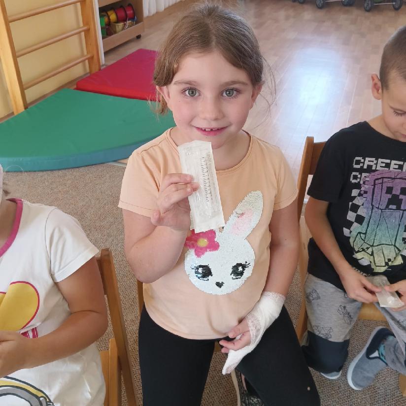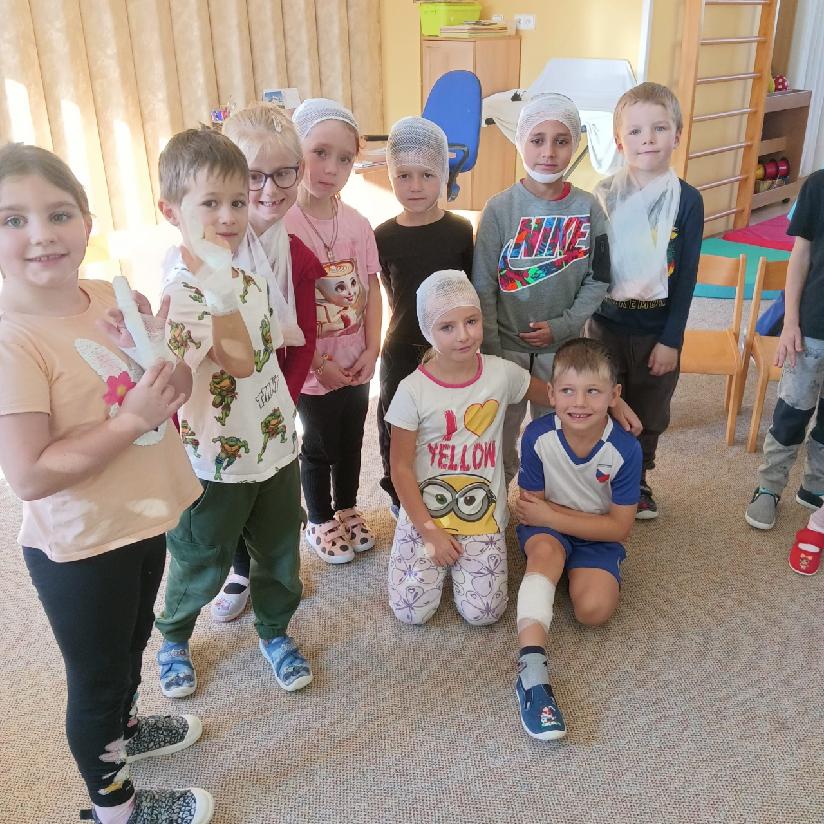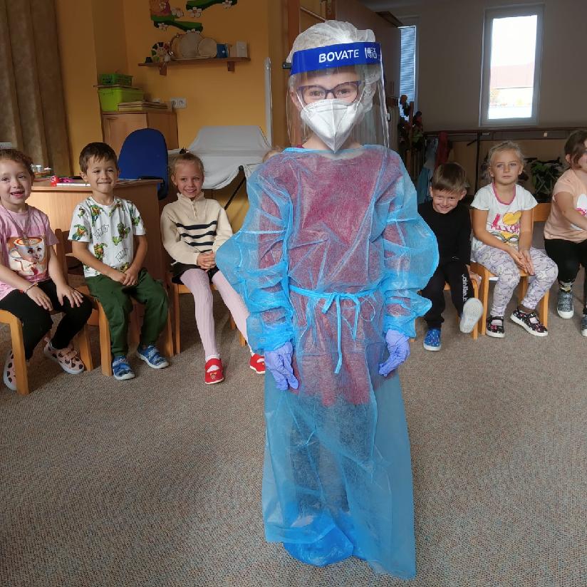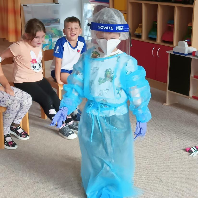 Tento týden se věnujeme tématu - TAJEMSTVÍ LIDSKÉHO TĚLA, a proto nás navštívila milá zdravotní sestřička, která nám přiblížila svou práci a povídala si s dětmi o daném tématu. Dále se také dozvěděly, jak vypadá oblečení zdravotní sestřičky, prohlédly si různé pomůcky, které při své práci používá, některé si dokonce mohly i vyzkoušet. Měly i možnost si vyzkoušet, jaké je to mít zlomený prst, ruku nebo úraz hlavy. Sestřička jim ukázala, jak se správně ošetřují zranění, o dobrovolníky nebyla nouze. Každé dítě si odneslo malý dáreček - dětskou stříkačku, která jim udělala velkou radost. Moc děkujeme za návštěvu a zpestření našeho programu.