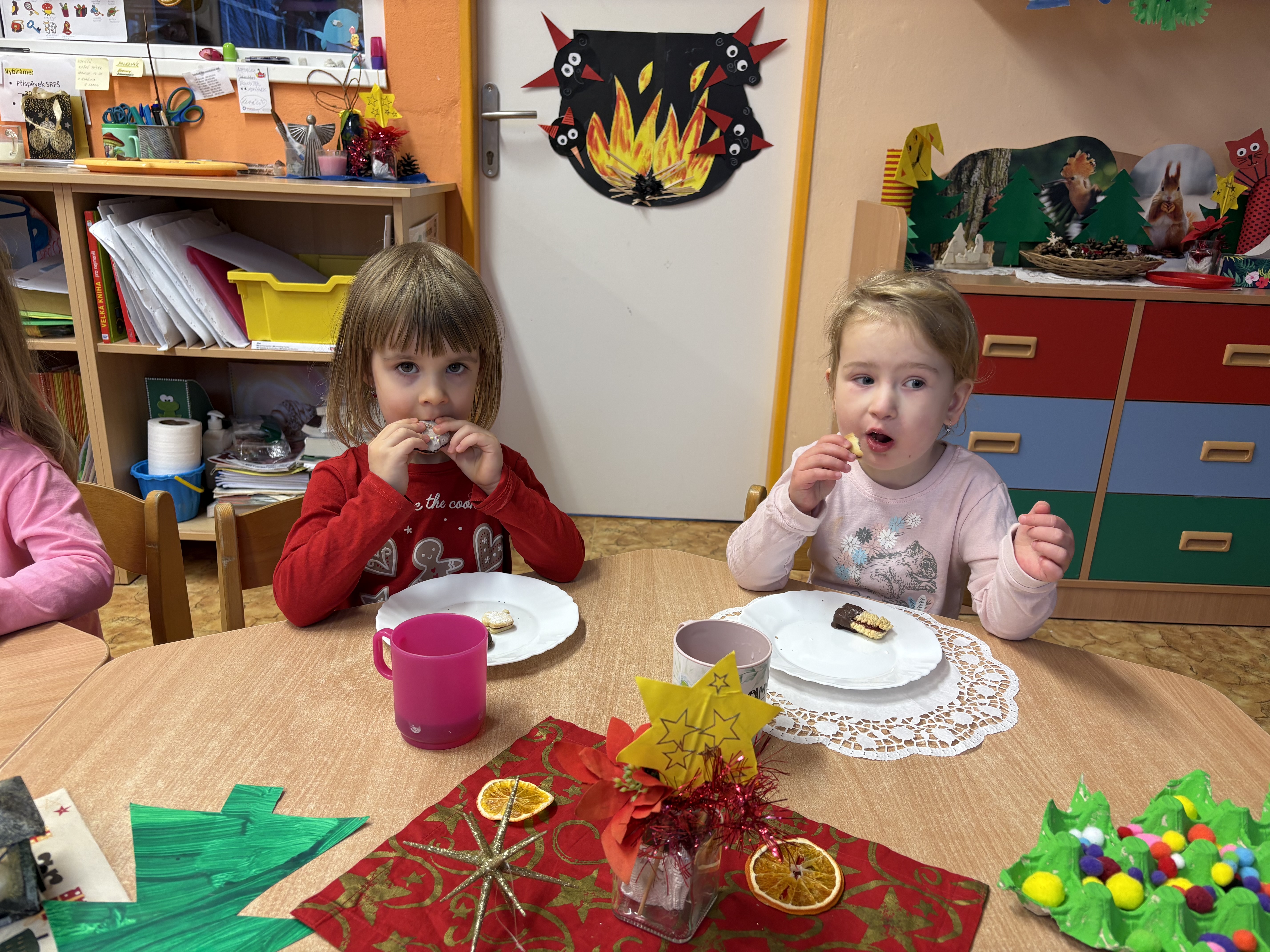 S dětmi jsme si sedli k velkému stolu, ochutnali cukroví, zapálili prskavku a čekali na zvuk zvonečku, než přijde Ježíšek. Nechal nám ve školce pár nových hraček, které jsme rovnou museli vyzkoušet. Bylo to kouzelné dopoledne.
